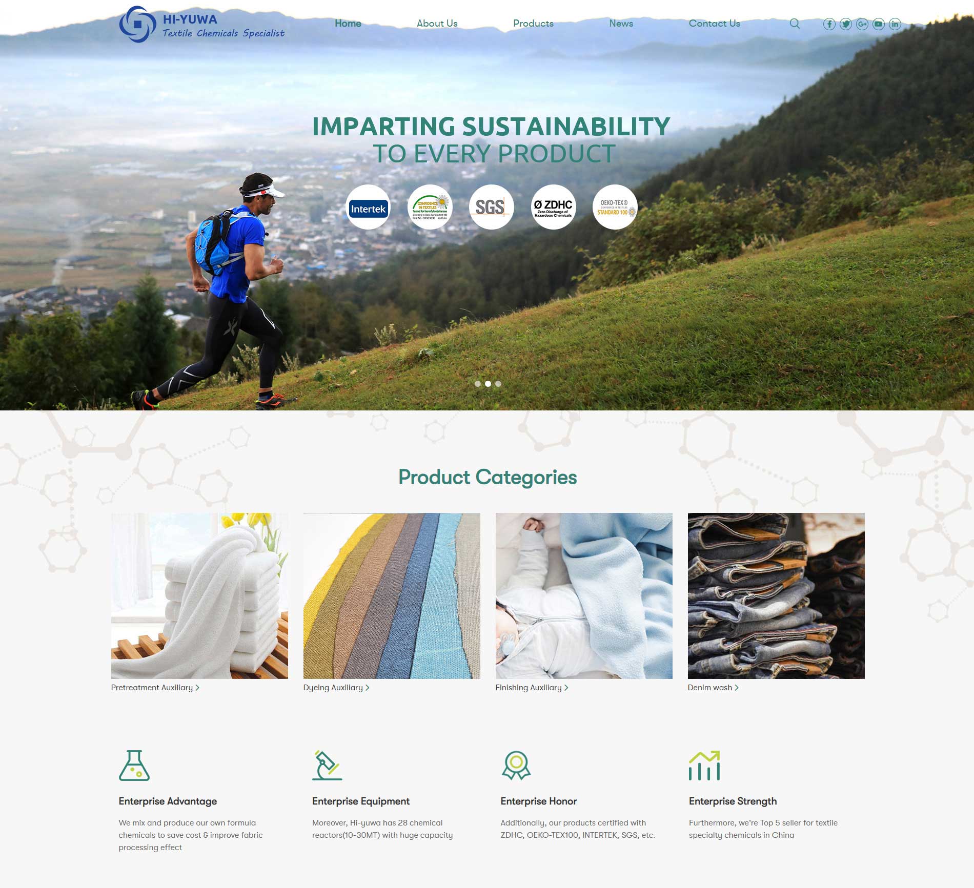 主要產(chǎn)品有: 精練劑、去油劑、皂洗劑、固色劑、流平劑、摩擦牢度改善 劑、防背染劑、聚酯親水軟化劑、棉軟化劑膏、硅油等。 主要客戶群體為:染整工廠。