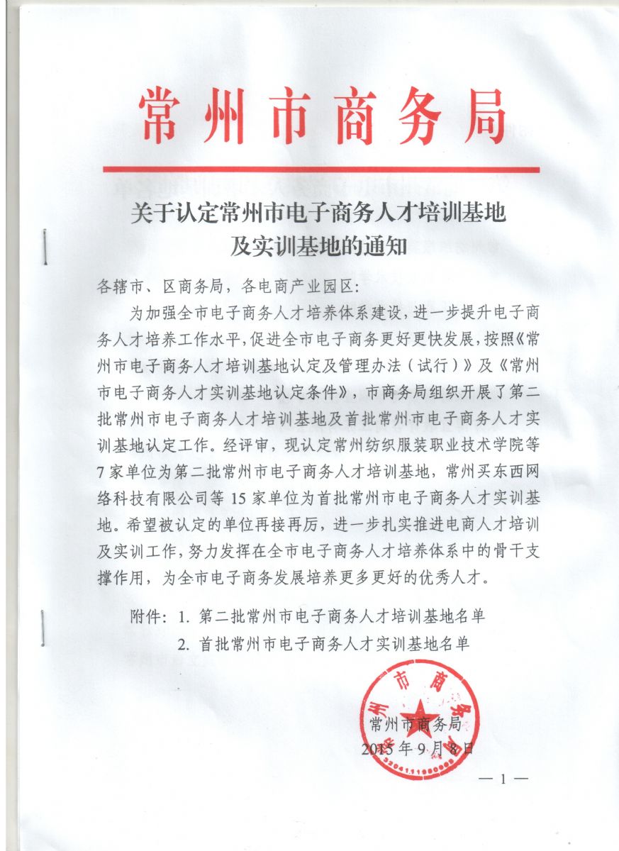 我司被認(rèn)定為常州市首批電子商務(wù)人才實(shí)訓(xùn)基地