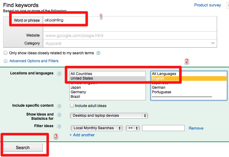 要理解如何利用這些工具來(lái)找潛在的外貿(mào)客戶(hù),首先我們要弄清楚谷歌的關(guān)鍵詞工具到底如何用, 簡(jiǎn)單的來(lái)說(shuō)你只需要在Google Keyword Tool中輸入一個(gè)關(guān)鍵詞,那么系統(tǒng)會(huì)自動(dòng)列出眾多的相關(guān)和相似的關(guān)鍵詞,而這些關(guān)鍵詞都是實(shí)實(shí)在在有用戶(hù)搜索過(guò)的,也就是說(shuō)是用戶(hù)的語(yǔ)言。有好幾個(gè)人在我博客留言說(shuō)是做油畫(huà)的,那我就用油畫(huà)來(lái)做這次的案例,首先我們?cè)陉P(guān)鍵詞工具中輸入油畫(huà) ‘Oil Painting‘ ,這是所有做油畫(huà)人的商人能想到的第一個(gè)關(guān)鍵詞。