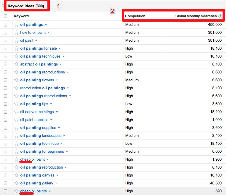 另外需要注意的是我標(biāo)注紅線的地方,兩個(gè)詞組都出現(xiàn)了Cheap這個(gè)詞,同時(shí)搜索也不高,兩個(gè)都沒(méi)有超過(guò)2000,但競(jìng)爭(zhēng)度卻都為High,與上面的Oil Painting Technique有18000搜索量相比,帶Cheap的反而競(jìng)爭(zhēng)度是High, 這更說(shuō)明這個(gè)詞是有很多人爭(zhēng)的。很多做油畫(huà)的朋友拉不下臉說(shuō)自己的產(chǎn)品Cheap, 畢竟油畫(huà)聽(tīng)起來(lái)還是屬于高端的貨色,但是用戶(hù)未必這么思考,我在新西蘭做油畫(huà),網(wǎng)絡(luò)銷(xiāo)售做到了全國(guó)第二,我可以很明確的說(shuō),對(duì)于大部分的老外來(lái)說(shuō),他們需要的只是一張能掛在墻上當(dāng)裝飾的畫(huà)而已。