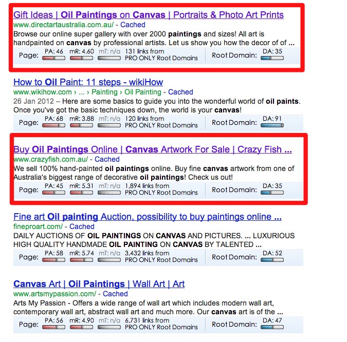 一眼掃過(guò)去,很明顯紅框中的兩家油畫(huà)商城域名都是.com.au 也就是澳洲的網(wǎng)站。點(diǎn)進(jìn)去一看,如果你是做油畫(huà)的,一眼就能看出他的產(chǎn)品肯定是從中國(guó)進(jìn)的,這代表什么?很簡(jiǎn)單,你可以把他變成你的客戶(hù)。油畫(huà)這行,如果你想賣(mài)給海外的畫(huà)廊,那希望很渺小,但如果你想賣(mài)給這種生意人,還是很簡(jiǎn)單的。