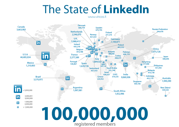 要看適不適合外貿(mào)B2B行業(yè)的朋友來推廣,首先要看看Linkedin用戶的分布和類型,整理了一些數(shù)據(jù)來簡單了解下Linkedin的狀況