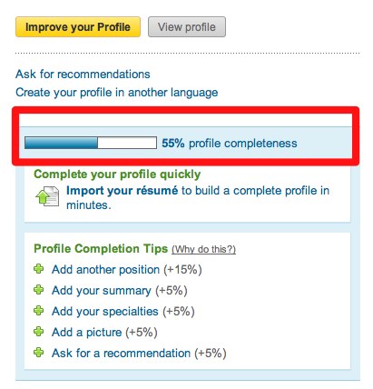 Linkedin為了保證用戶的高質(zhì)量,所以在注冊成功之后,會要求你填寫一些你的相關(guān)資料,其中最難完成的就是需要有人給你寫些評語進行推薦,你需要三個會員給你寫評論和推薦才算100%完成你的資料填寫,當(dāng)然完成之后也會帶來更多的人加你。相信很多外貿(mào)SOHO一開始都不會有評價,那么想獲得別人的推薦的唯一方法就是你先去主動給別人寫評論了,直到有人給你寫了為止。