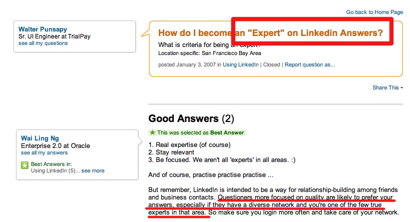 - 在Linkedin問答區(qū)回答問題質(zhì)量貴在精辟,如果被選中最佳答案,是有機會被貼上‘Expert’的標(biāo)簽!