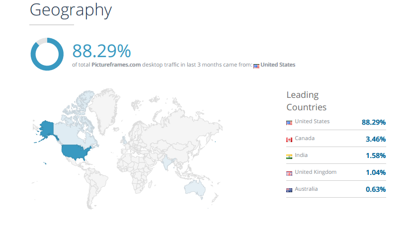 如果有子域名頁面(多語言,app,登陸頁等)的流量有比較明顯的數(shù)據(jù),證明網(wǎng)站除了做主站的流量,同時他們也將營銷側(cè)重在一些國家,或者是app推廣。那么我們通過數(shù)據(jù)能夠看到排在第二位的是 email.pictureframes.com,通過地址訪問進(jìn)入,卻是一個電子商務(wù)郵件營銷的入口,這說明這個公司在郵件營銷一直在堅持投入,并且有效果。