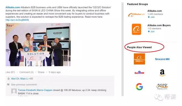 (2)潛在客戶來到了你同行的Company Page, 你不會(huì)出現(xiàn) (反之,哈哈,如果你做了Company Page, 就算客戶直接來到了你競(jìng)爭(zhēng)對(duì)手或同行的Company Page, 你也很有可能會(huì)被推送到你潛在客戶的面前,一個(gè)簡(jiǎn)單的“People Also Viewed", 用處大著呢!