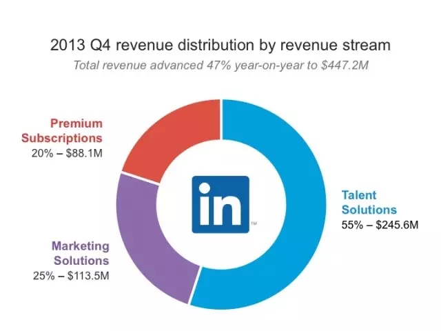 (圖1 2013年LinkedIn公司Q4營收中市場營銷占到25%)