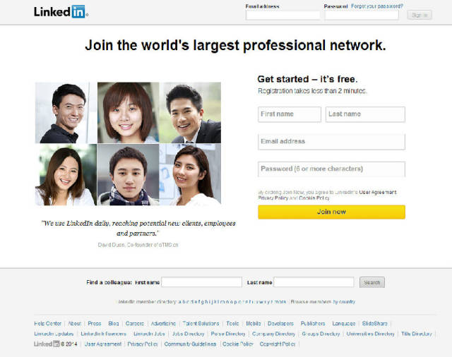 在LinkedIn的首頁上,寫著“加入全球最大的職業(yè)社交網(wǎng)絡(luò)吧”。那么這是一個怎樣的職業(yè)社交網(wǎng)絡(luò)呢?