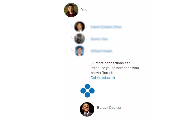 甚至,如果你想賣給奧巴馬一個圓珠筆,可能都能找到給你們牽線搭橋的人。從LinkedIn中,你甚至可以找到某個人脈關(guān)系,能幫助你在美國總統(tǒng)之間建立某種聯(lián)系。