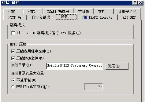 改進建議:5秒內(nèi)可以打開,改買VPS、合租服務器、云服務器,硬件只速度決定因素之 一,網(wǎng)站程序也很重要,請優(yōu)化你的網(wǎng)站程序訪問速度,如減小圖片體積、少使用大圖等,還有一個就是要設置網(wǎng)頁壓縮,一般獨立服務器的話在IIS里設置,如圖: