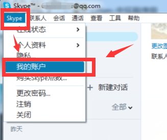 ▼由電腦客戶端登錄,選擇Skype,我的賬戶,點擊: