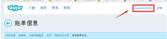 ▼進入后,查看頁面頭部,“l(fā)ive:64XXXX451”才是真正的skype帳號